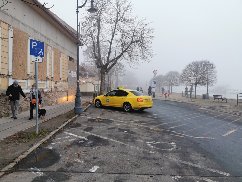 Különösen veszélyes hely útburkolati jel és halszálkás parkoló egymásra vannak festve. Mindkettő ugyanúgy kopott, nagyjából 60%-ban. A parkolást csak a különösen veszélyes útburkolati jel tiltaná egyértelműen, ha nem lenne a parkoló vonala felfestve. Tábla nem jelzi külön a parkolás tilalmát, más autóst is megtévesztett a jelzés.