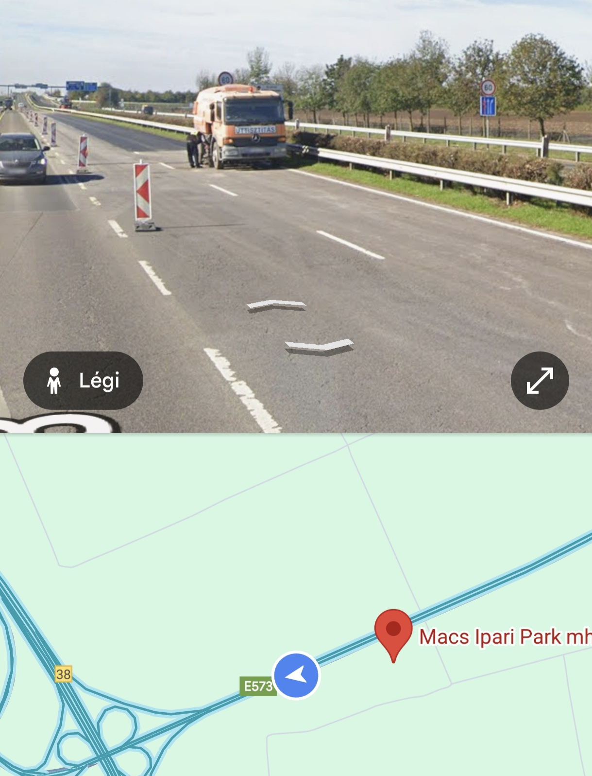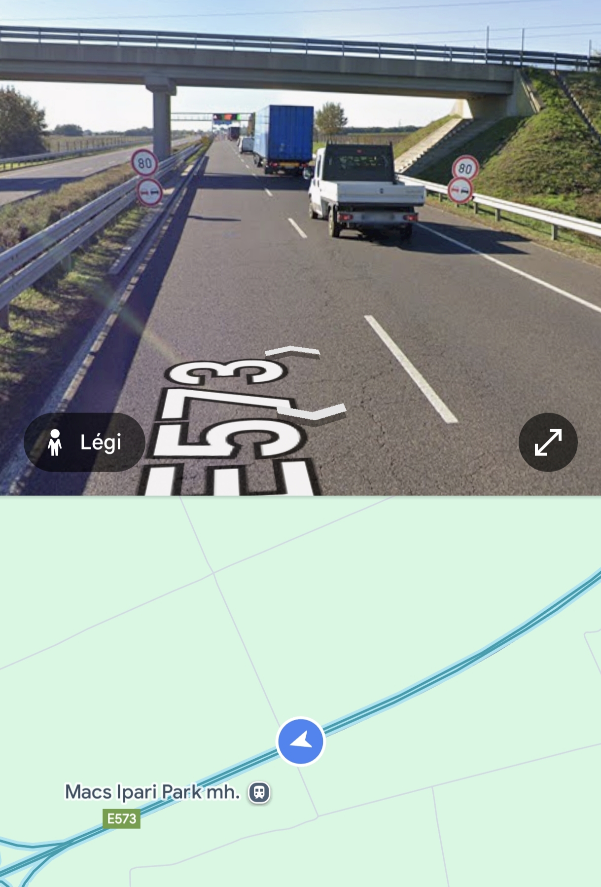 (A képek elég vacakul adják vissza az élményt, de mire sikerült tempóból lekattintani az első fotót, már a rámpán voltunk, a Google Mapsen pedig még a végső kiépítettség előtti állapot látható, de az érzékelhető, mennyire korán jön a 80 és 60.)