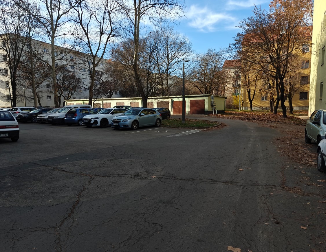 Érdemes lenne a belső út forgalmi rendjét felülvizsgálni és hivatalos táblázásal (egyirányú forgalom, behajtani tilos) egyértelművé tenni.