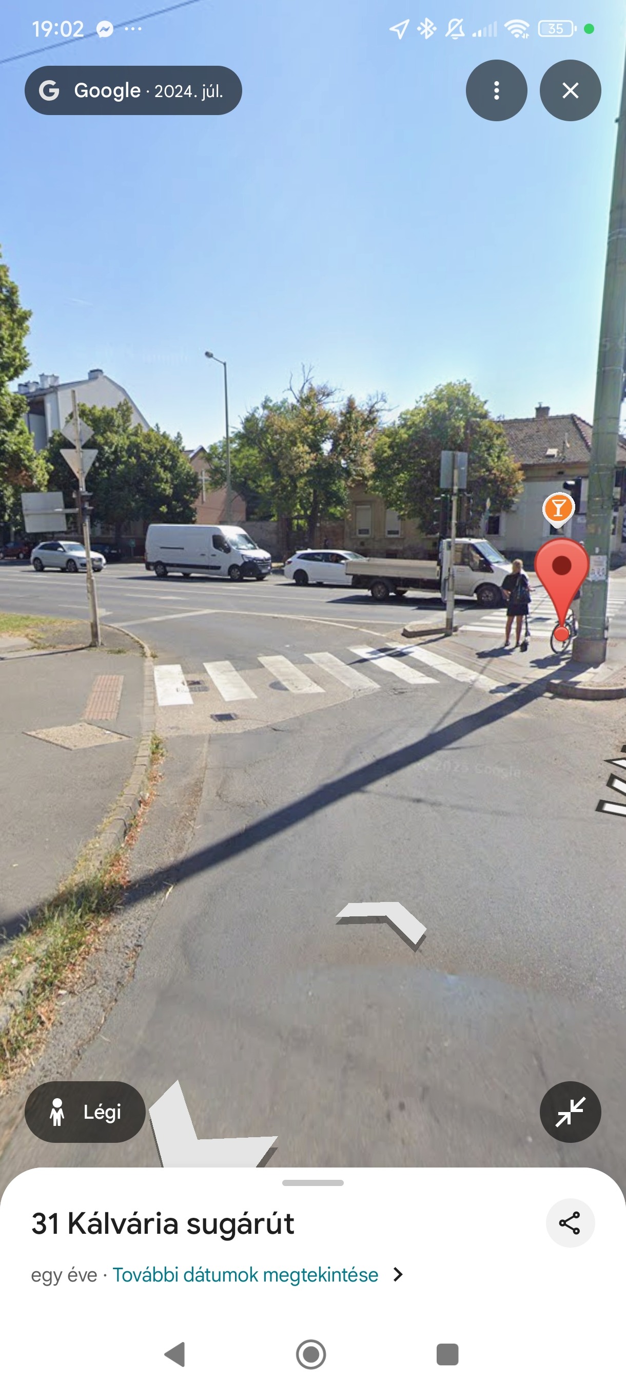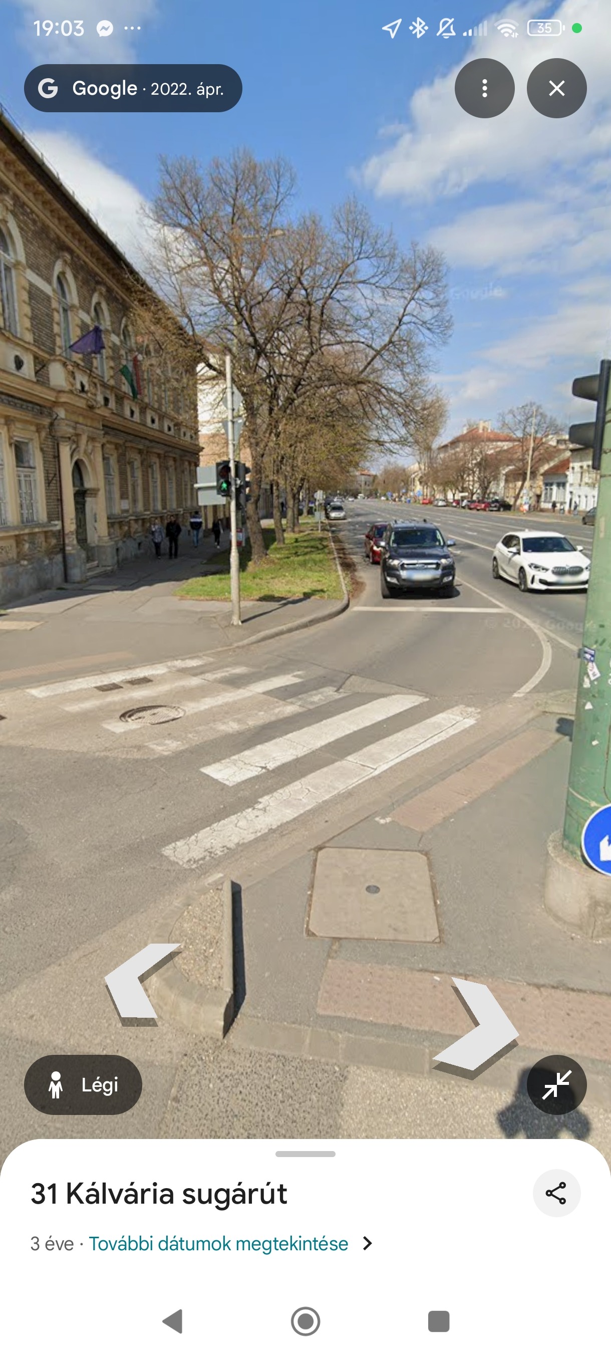 - Különösen a kialakítás geometriája (45 fokban elhelyezett zebra) tévesztheti meg az autósokat, így a nyilas (irányított) zöld indokolt.Azért szeretnénk felhívni a figyelmet, hogy a nyilas zöld nem garancia, hogy ne legyen zöld a zebrának! Budapesten két kereszteződést is tudunk, ahol így van (nyilas zöld és gyalogos). A KRESZ is így fogalmaz: "a felfelé, illetőleg az oldalra mutató nyíl alakú zöld fény a jelzett irányban (irányokban) szabad utat jelez: a jelzett irányban (irányokban) tovább szabad haladni, bekanyarodás esetén a szabad jelzésen áthaladó gyalogosoknak elsőbbséget kell adni".Az új KRESZ (ha lesz), rendezi ezt, vagyis nyilas zöld esetén tényleg védett lesz a kanyarodás, a gyalogosokkal szemben is.Az ügyet jelezzük az önkormányzatnak.(A bejelentő veszélyesnek jelölte ezt. Szerintünk csak zavaró, mert az, hogy az autós jobban odafigyel, hogy jöhet-e onnan gyalogos, ami egyébként is dolga, és esetleg megtorpan, legfeljebb az áthaladás hatékonyságát rontja, de nem veszélyes.)