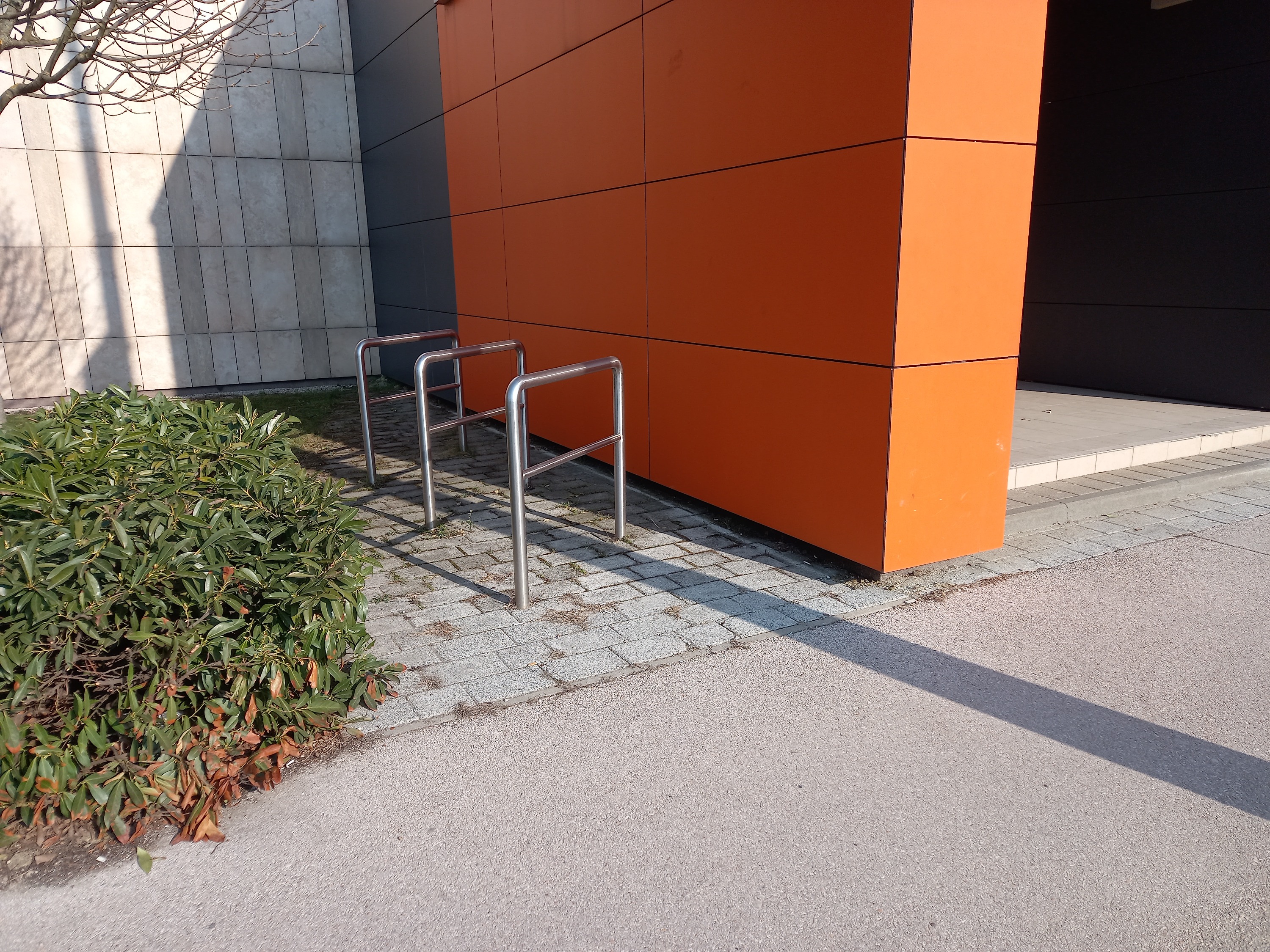 Tatabányán a Vértes Agorája hátsó bejáratánál van egy kis forgalmú kerékpártároló, melyből a kijárni kívánók csak takarásból tudnak kijönni. A kijövetel keskeny, járda szélességű osztatlan gyalog- és kerékpárútra történik. Korlátozások híján a megengedett sebességkorlát 20 km/h, amelyet én irreálisan nagynak tartok. És ezt nem a kerékpártároló használójaként mondom, hanem az itteni gyalog- és kerékpárút használójaként. Rendkívül balesetveszélyesnek tartom a jelenlegi kialakítást.