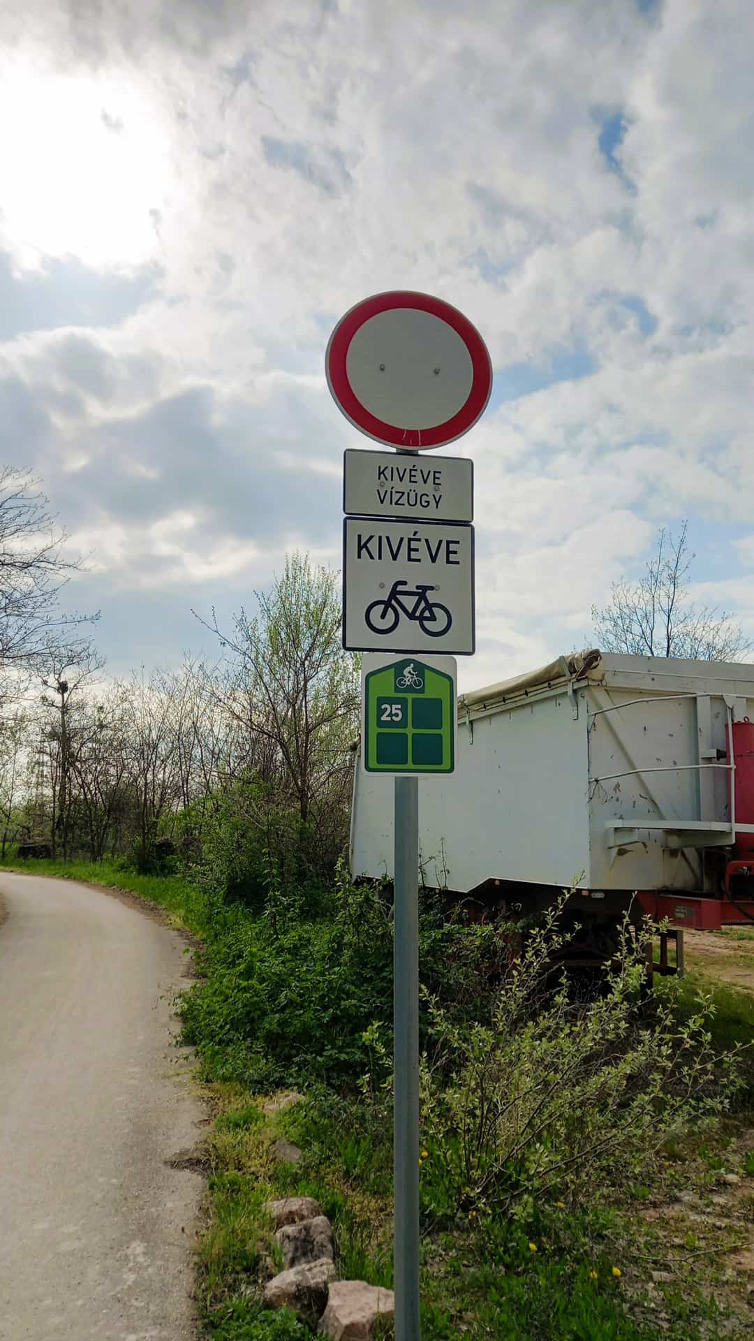 A hiányzó tábla pótlása. A kerékpáros útirányjelző tábla szintén hiányzik, de azt nem kell pótólni - valójában pár méterrel korábban ki van helyezve.